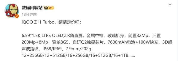 iQOO Z11 Turbo詳細參數流出 對手是REDMI和真我?